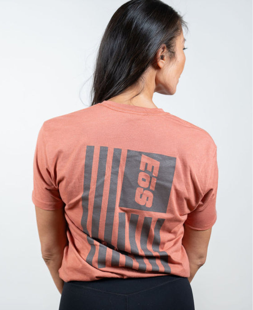The soft, breathable fabric of this durable crewneck tee features our EoS flag artwork on the back and logo on the right shoulder.